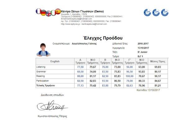 - Δυνατότητα περιγραφικής αξιολόγησης.